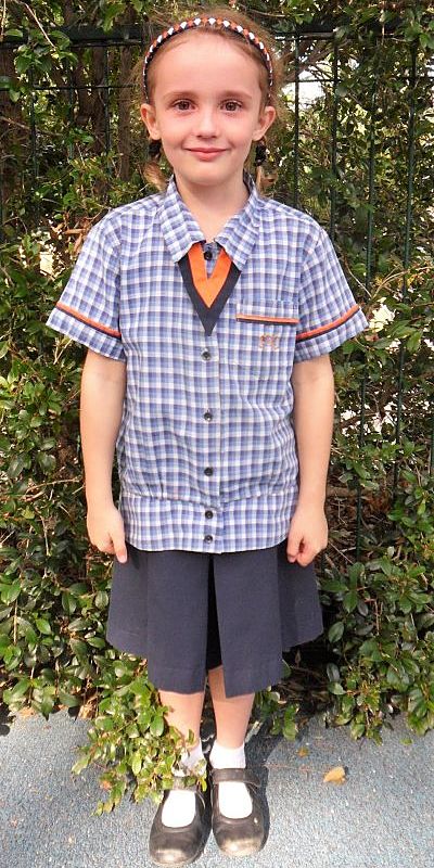 Hair is to be worn in a style appropriate for Primary School age children. It is to be in a tied style if longer than the shoulders. Hair ribbons or scrunchies are to be navy, white or orange.
